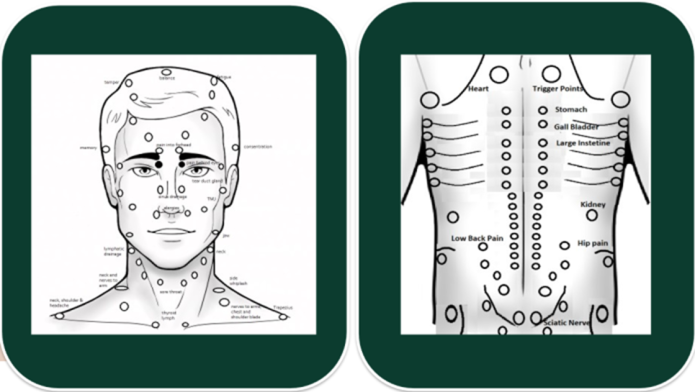 Sen~SORES scans the skin to detect signs of inflamed soft tissue I.e. acupoints. Once found simply apply pressure to reduce swelling.