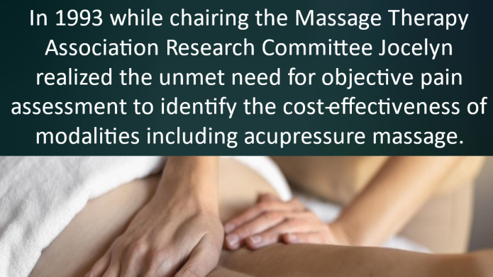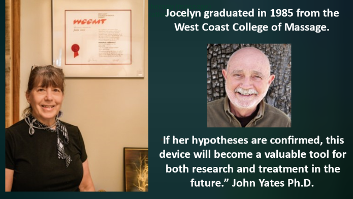 The inventor, Jocelyn W Cowie is a 36-year Medical Massage Therapist and pain expert.